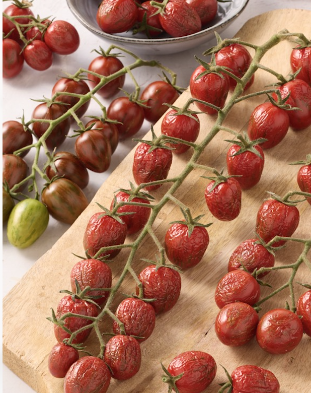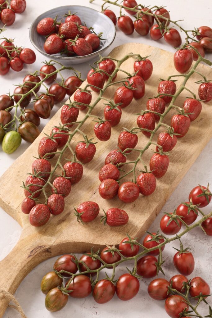 Small-sized tomatoes that dry naturally on the vine, transforming into raisin-like fruits with an exceptional sweet taste.